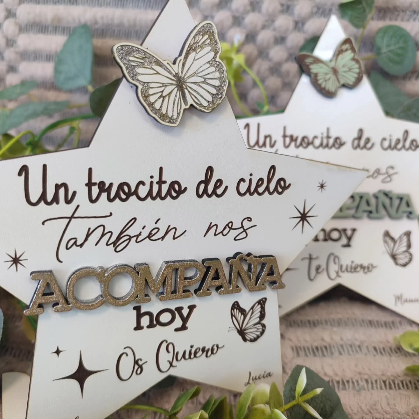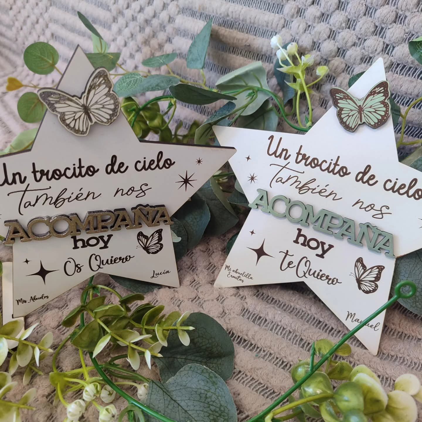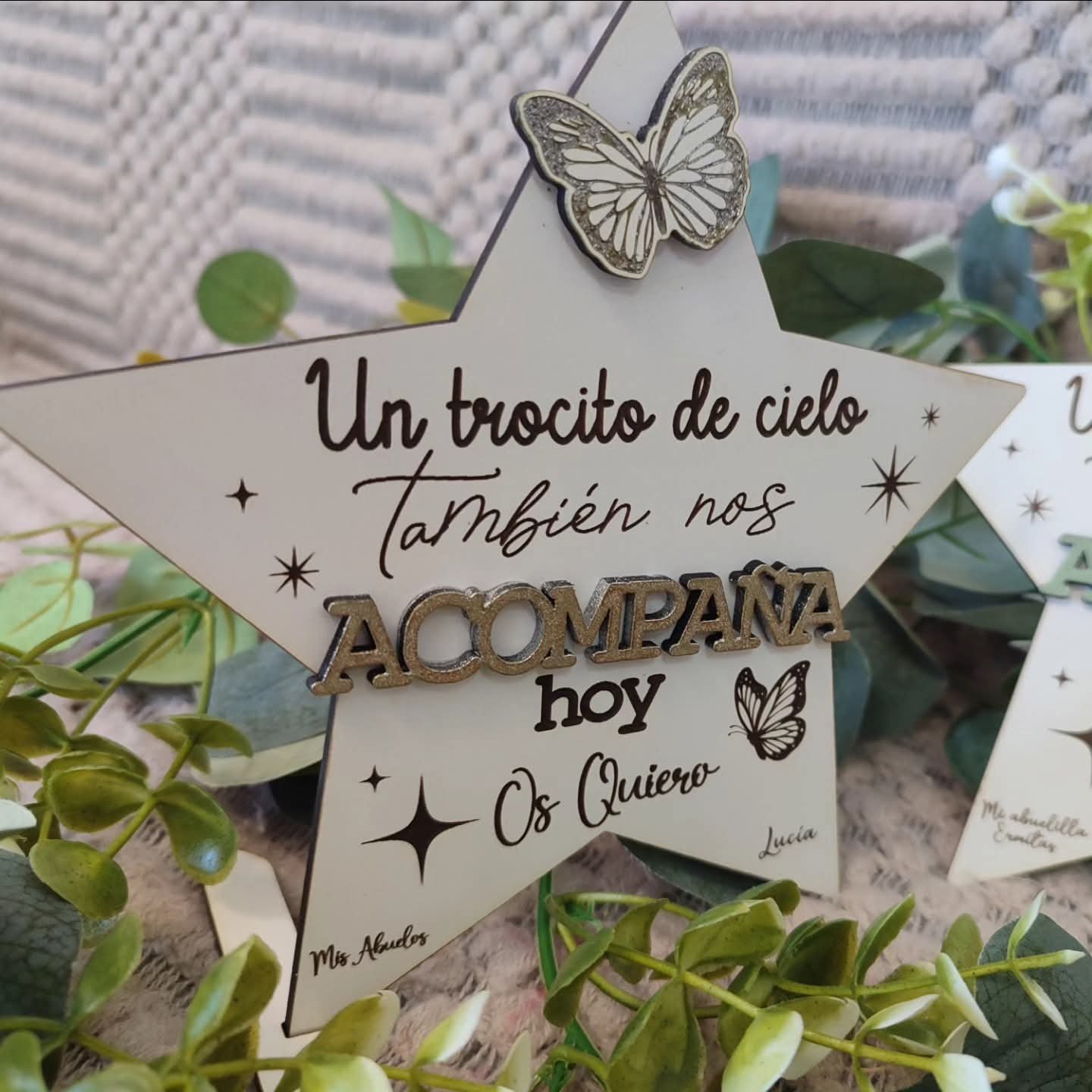 La estrella de madera con recordatorio es mucho más que un simple objeto decorativo. Representa una manera hermosa y conmovedora de recordar a tus seres queridos, manteniendo vivo su legado en tu corazón y en tu hogar. Su diseño cuidadosamente elaborado, con madera de alta calidad, garantiza durabilidad y una estética atemporal que complementará cualquier espacio.